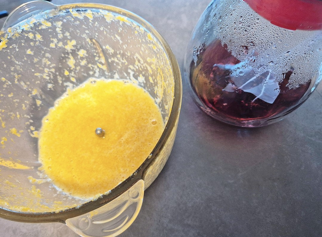 번거롭다면 시판 오렌지주스로 대체해도 괜찮고, 컵의 약 80% 정도 채우면 좋아요